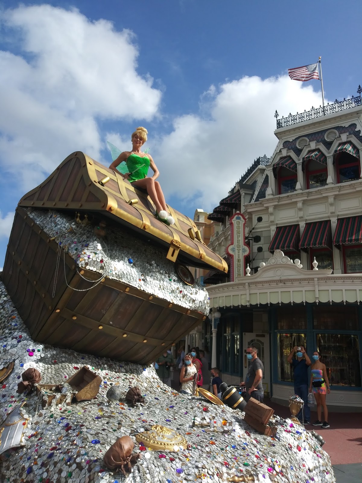 I had barely made it to the hub when – cue the music – along came Tinkerbell spreading her pixie dust along Main Street. It was the first of several times I would see Tink’s float sparkling past the guests that day in an unscheduled “character cavalcade.”